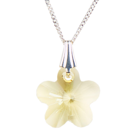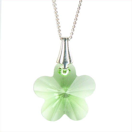 Each pendant is lovingly handmade made using a 14mm Swarovski flower shaped crystal, placed on an 18“ Sterling Silver (925) chain. (PEN-01)