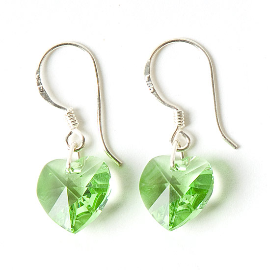 Every pair of crystal heart earrings are made by hand using two 10mm Swarovski heart shaped crystals and 925 Sterling Silver earwires. (EAR-02)